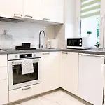 The apartment comes with a full kitchen, which has a microwave, an electric kettle, and a fridge. Lokal na Rybe serves Mediterranean cuisine and is situated 350 metres away. Warsaw Frederic Chopin airport is at a 15-minute driving distance, and Goszczynskiego 01 bus stop is within close proximity of this 32 m^2 apartment.